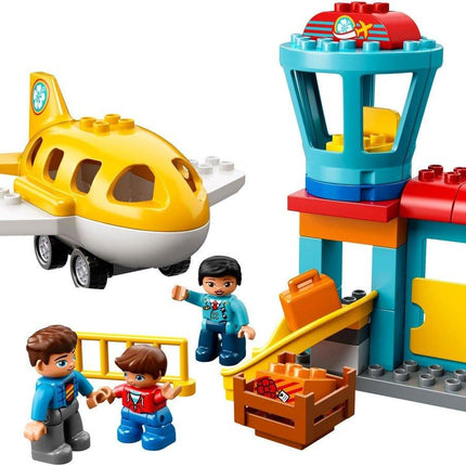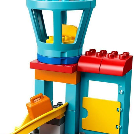 Odglumite scene iz stvarnog života u LEGO® DUPLO® gradu: prepoznatljivi svet sa modernim DUPLO figuricama. Pomozite svom malom pilotu da se pripremi za uzletanje sa DUPLO aerodroma! Predškolcima mogu jednostavno da naprave kapiju za ukrcavanje, pokretnu traku za prtljag i rotacioni toranj za kontrolu vazdušnog saobraćaja. Mališani će uživati dok pomažu pilotu da ukrca sve putnike u avion koji može da se gradi i da se vine u nebo! Komplet sadrži 3 DUPLO figure.